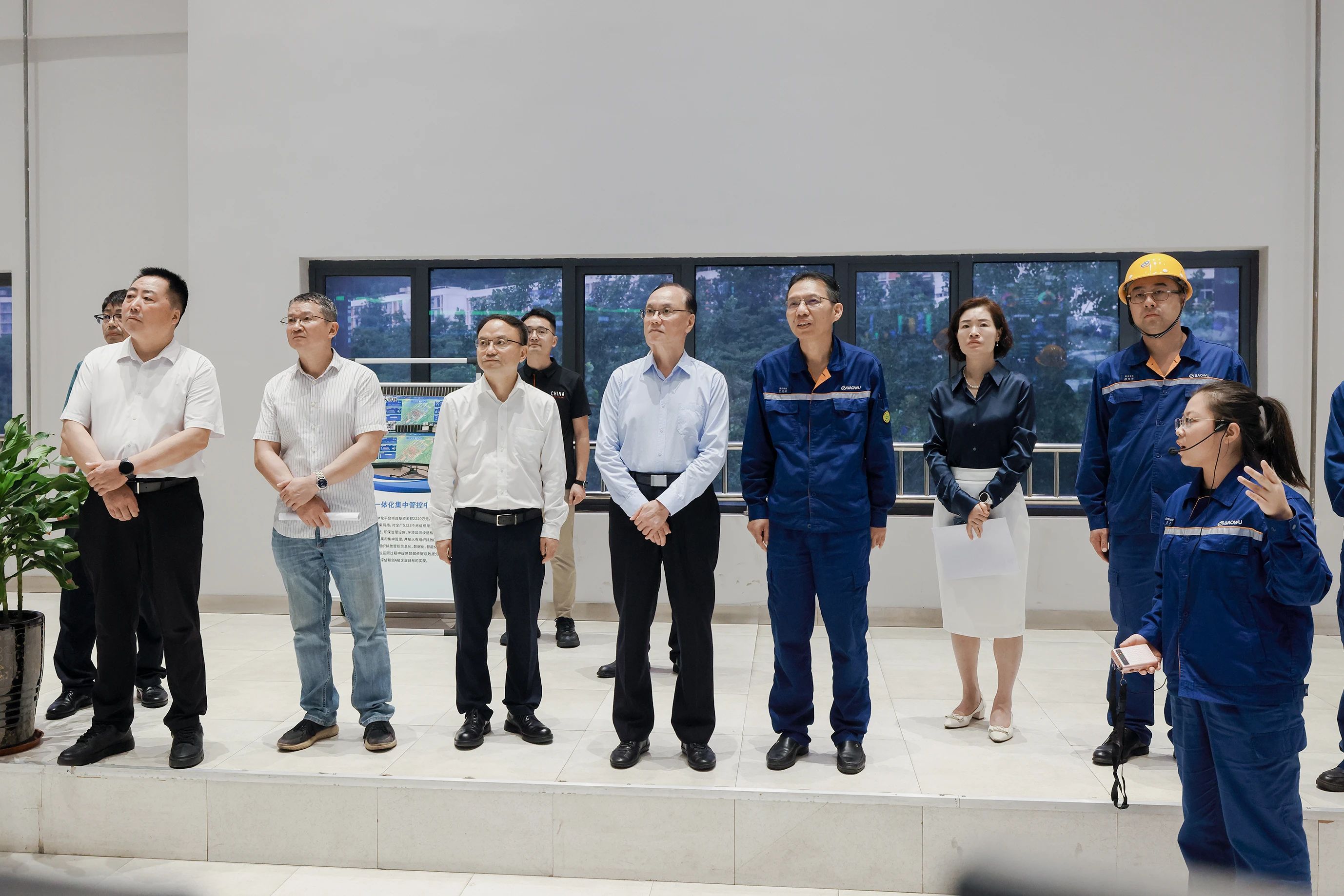 在智慧中心操業大廳,余國東聽取了超低排放一體化集中管控平臺建設匯報。平臺通過數字化手段整合公司全流程5123個無組織排放源數據,實現對環保治理設施、環境監測數據的實時采集與智能分析,為超低排放評估和環保績效創A提供精準支撐。