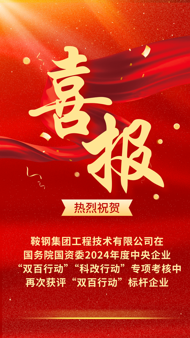 近日,在國務院國資委開展2024年度中央企業“雙百行動”“科改行動”改革成效評價中,鞍鋼集團工程技術有限公司再次獲得“雙百標桿”榮譽。