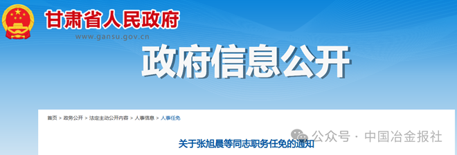 近日,甘肅省人民政府網(wǎng)站發(fā)布《關(guān)于張旭晨等同志職務(wù)任免的通知》一文。
