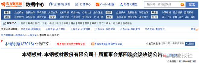9月29日,本鋼板材發(fā)布了《本鋼板材股份有限公司十屆董事會第四次會議決議公告》(以下簡稱《公告》)。