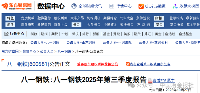 10月27日,八一鋼鐵發布《八一鋼鐵2025年第三季度報告》。