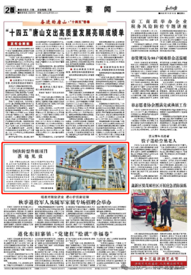 11月15日,唐山勞動日報發布《鋼鐵轉型升級項目 落地見效》一文。