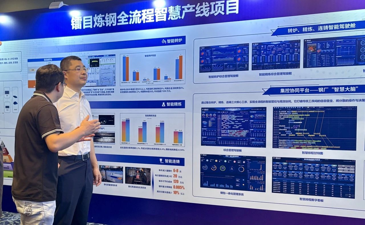 展覽現場,詳實的技術模型和具體的效益數據直觀呈現了項目價值,有力印證了“鐳目智能煉鋼,不造概念,只創效益”的理念。