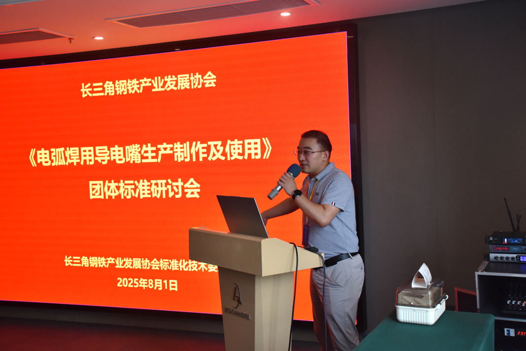 2025年8月2日下午,舉行了《電弧焊用導電嘴生產制作及使用》團體標準發布會。會議由長三角鋼鐵產業發展協會秘書長包忠峰主持,包秘書長指出長三角鋼鐵產業發展協會始終致力于推動產業標準化與高質量發展,此次聯合高校專家、行業專家、企業代表等多方力量制定《電弧焊用導電嘴生產制作及使用》團體標準,正是為了填補焊接行業導電嘴標準空白,為產業健康發展保駕護航,他強調,高質量標準需企業、政府、高校、協會協同發力,推動標準實施,將標準轉化為實際生產力。