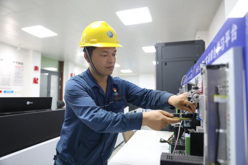 汪彬在方大特鋼鮑文戩勞模創(chuàng)新工作室進行實操訓(xùn)練