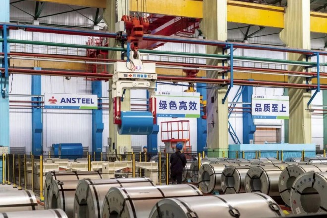 走進鞍山鋼鐵冷軋彩涂分廠,現場空無一人,只有各組機器在快速運轉,智能涂料運輸機器人閃爍著燈光穿梭其中。在這里,“一鍵啟動”“無人作業”成了關鍵詞,機器人配合無人天車,實現作業區域無人作業。而這,只是鞍山鋼鐵25條智能化產線中的一個。在這里,可以感受到撲面而來的數智化浪潮。