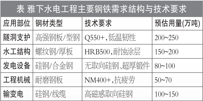 雅下水電工程的“鋼需”結構聚焦特種鋼材——