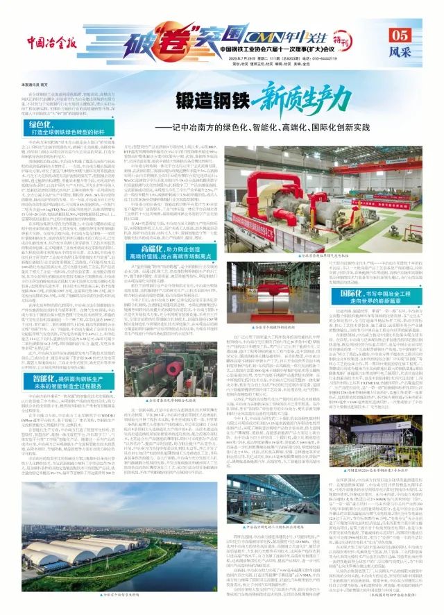 中冶南方深刻把握“綠水青山就是金山銀山”的發展理念,以不斷迭代創新的低碳技術,破解行業高耗能、高排放難題,持續助力鋼企實現經濟效益與生態效益的雙贏,打造全球鋼鐵綠色轉型的標桿范式。