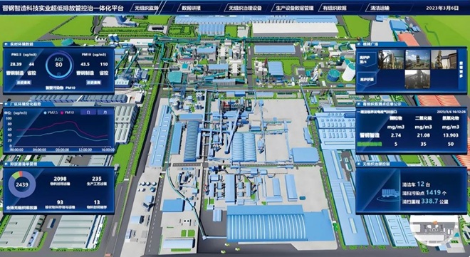 中冶京誠數科公司更將工業互聯網思維融入環保治理,打造出“數字孿生+實景指揮”的創新管理模式:融合“監測溯源-智能決策-高效治理”的先進系統,為晉鋼構建了集感知、治理、管控于一體的智能化系統;系統通過采集和在線監測在面積為7平方公里廠區全域的216臺TSP監測儀、43個微型空氣站,構建起“空天地”立體監測網絡,配合自主研發的污染溯源算法,實現了2400余個污染源的電子地圖動態追蹤,極大地提高了污染事件定位精度,縮短了響應速度;在中央調度大廳,40米弧形巨幕實時呈現三維可視化廠區,當發現生產排放超標時,可精準定位排放源實現污染排放的及時處置,確保企業持續獲得環保績效紅利。站在“雙碳”時代潮頭,中冶京誠將持續發揮在環保治理、能源管理等領域的領先優勢,助力更多鋼鐵企業駛入綠色發展快車道。