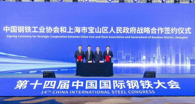 8月7日,第十四屆中國國際鋼鐵大會期間,隆重舉行了中國鋼鐵工業協會和上海市寶山區人民政府戰略合作簽約儀式、低碳排放鋼產品(C2F Steel)發布儀式以及低碳排放鋼評價啟動儀式。中國鋼鐵工業協會副會長兼秘書長姜維,副秘書長馮超;上海市寶山區人民政府區委副書記、區長鄧小冬,區委常委、副區長肖剛出席。