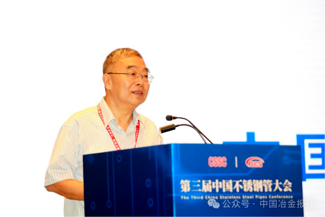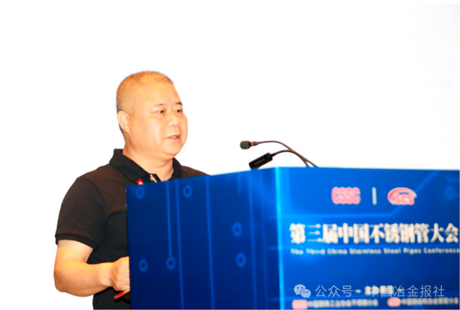 圖為鋼協(xié)不銹鋼分會專家委員會專家李天寶做題為《中國不銹鋼管行業(yè)發(fā)展現(xiàn)狀及未來發(fā)展趨勢》的主旨報告