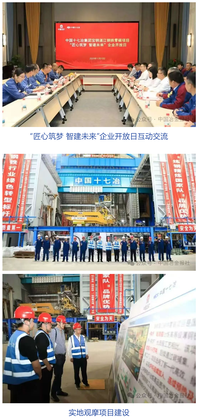 11月10日,中國中冶“匠心筑夢·智建未來”企業開放日走進中國十七冶承建的寶鋼湛江鋼鐵零碳項目直接還原鐵輸送設施及煉鋼工程項目。活動邀請業主單位寶鋼湛江鋼鐵等產業鏈上下游企業代表,以及新華網、央廣網、中國冶金報、中安在線等主流媒體,通過黨建聯建共建、座談交流、實地探訪等多種形式,立體呈現中國十七冶充分發揮煉鋼精煉領域的專業優勢、以數智建造賦能項目品質履約,服務國家戰略和產業鏈升級的生動實踐和建設成果。