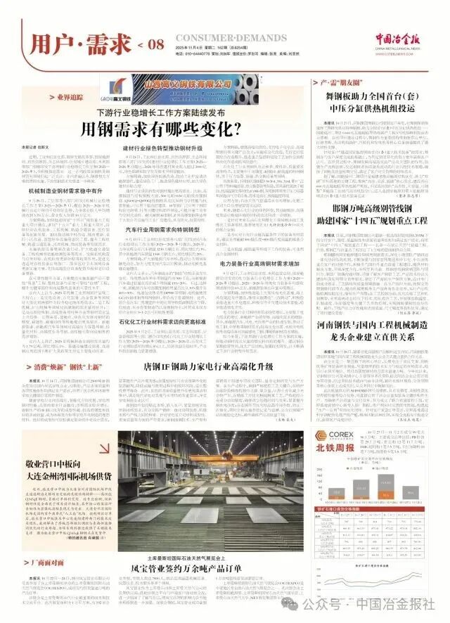 近期,工業(yè)和信息化部、國(guó)家發(fā)展改革委、國(guó)家能源局、自然資源部、生態(tài)環(huán)境部、住房城鄉(xiāng)建設(shè)部、水利部等部門(mén)相繼印發(fā)下游用鋼行業(yè)穩(wěn)增長(zhǎng)工作方案(2025—2026年),并積極推進(jìn)落實(shí)。這一系列政策在鋼鐵及鋼材貿(mào)易領(lǐng)域引起廣泛關(guān)注。業(yè)內(nèi)普遍認(rèn)為,隨著相關(guān)方案的貫徹實(shí)施,下游用鋼需求有望進(jìn)一步釋放。