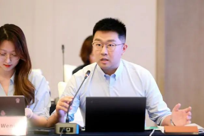 圖為馮超介紹中國鋼鐵綠色低碳創新進展并做交流發言