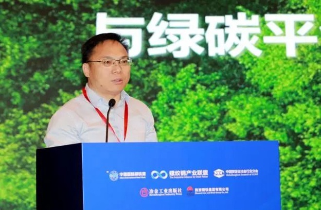 劉冬介紹了螺紋鋼產品發展現狀、螺紋鋼出口各國認證制度簡介,并分享了關于螺紋鋼企業綠色低碳發展路徑的思考。徐少兵做《建筑用鋼及鋼結構 PCR 2.0與綠碳平臺建設助力高端建筑綠色低碳發展》主題報告并指出,在全球碳中和背景下,建筑行業加速綠色轉型,采購低碳排放鋼材成為關鍵路徑。陜鋼集團研究總院副院長許宏安、南京凈環熱冶金工程有限公司副總經理于宏朋分別做《綠色智能直軋技術裝備產業化相關主題》《趁熱打鐵——長材高溫直軋技術變革》主題報告。