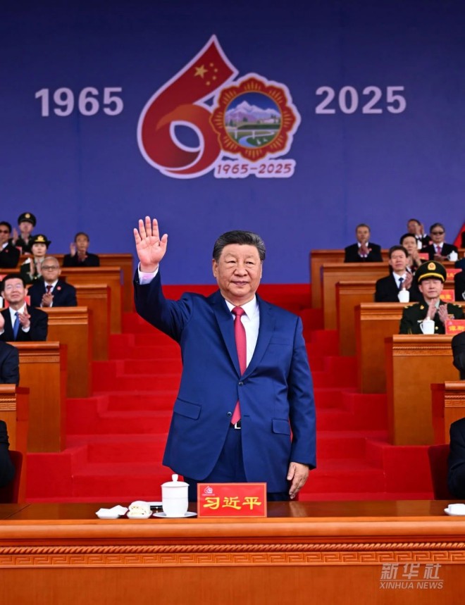 王滬寧發表講話。他說,1965年9月,在黨中央親切關懷和黨的民族政策光輝照耀下,西藏自治區宣告成立。這是西藏發展史上具有劃時代意義的大事,鞏固了西藏和平解放和民主改革的偉大成果,實現了西藏社會制度的歷史性跨越。60年來,西藏經濟社會全面發展,民族區域自治制度成功實踐,民族團結日益鞏固,各族人民生活蒸蒸日上,充分展現了中國共產黨領導的堅強力量,充分展現了我國社會主義制度的顯著政治優勢。