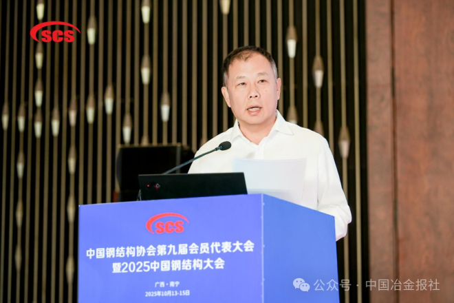 2025年10月13日-15日,中國鋼結構協會第九屆會員代表大會暨“2025中國鋼結構大會”在廣西南寧召開。大會以無記名投票方式選舉產生第九屆理事會理事365人,第二屆監事會監事7人,薛健為監事長,表決通過《章程》修訂案。九屆一次理事會議選舉常務理事103人、負責人28人,曾濱當選為會長,王玉貴等26人當選為副會長,李慶偉當選為秘書長。會后,中國鋼鐵工業協會副會長夏農對新任職的28位理事會負責人進行了集體談話。