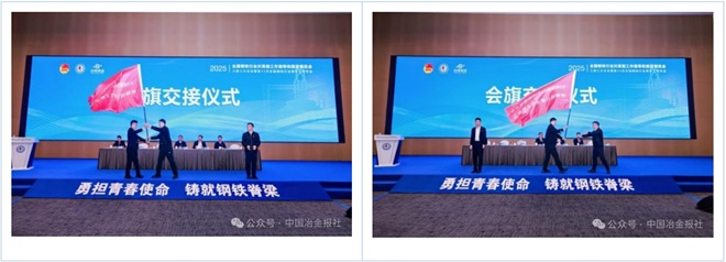 畢魯博代表全體參會人員作大會總結(jié)。隨后,畢魯博、李磊磊、張兆磊共同完成了會旗交接儀式。張兆磊代表下一屆全國鋼鐵行業(yè)青年工作年會承辦單位作表態(tài)發(fā)言。
