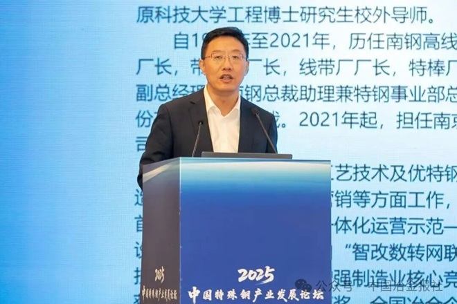 11月12日下午—13日上午,由中國特鋼企業(yè)協(xié)會主辦、太原鋼鐵(集團(tuán))有限公司、上海鋼聯(lián)電子商務(wù)股份有限公司協(xié)辦的2025中國特殊鋼產(chǎn)業(yè)發(fā)展論壇在江蘇南京成功舉行。中國特殊鋼產(chǎn)業(yè)發(fā)展論壇作為中國特殊鋼領(lǐng)域規(guī)模最大、最具影響力的行業(yè)發(fā)展論壇,迄今為止已成功舉辦十九屆。本屆論壇響應(yīng)黨的二十屆四中全會“加快高水平科技自立自強(qiáng),引領(lǐng)發(fā)展新質(zhì)生產(chǎn)力”的號召,以“創(chuàng)新驅(qū)動 特鋼強(qiáng)基 助力新型工業(yè)化”為主題,探討中國特鋼行業(yè)現(xiàn)狀及未來發(fā)展趨勢,搭建起思想交流與價(jià)值鏈接的高端平臺。中國特鋼企業(yè)協(xié)會十屆四次會員大會、2025中國(南京)國際特殊鋼工業(yè)展覽會等活動同期舉行。