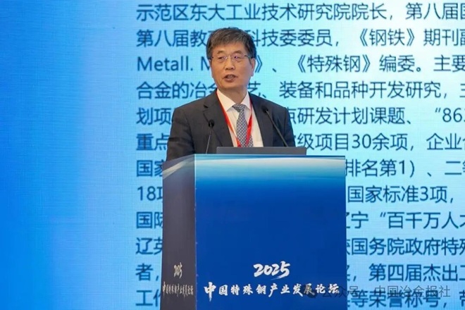 東北大學(xué)特殊鋼冶金研究所所長姜周華在《高端特鋼和特種合金的研究與展望》報(bào)告中重點(diǎn)分享了在特種冶金純凈度控制、新能源汽車一體化壓鑄模具鋼,以及冶金過程智能化等方面的關(guān)鍵突破與前沿思考。報(bào)告直擊行業(yè)“卡脖子”環(huán)節(jié),從超純?nèi)蹮挼墓に嚫镄碌狡平飧邔?dǎo)熱模具鋼的性能瓶頸,再到冶金過程的智能升級,清晰勾勒出中國特鋼邁向高端化、智能化的技術(shù)路徑。